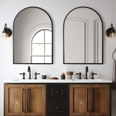 FONTOI 38"L x 26"W Arched Wall Mirror with Metal Frame Arched Design for Bedroom Entryway Hallway Living Room Bathroom and Modern Spaces, Black