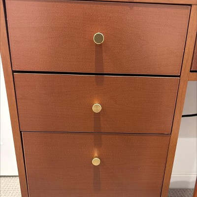 If you’re thinking of buying it, don’t. The color is way more orange than the picture, the quality is absolutely horrible, the drawers don’t line up well, some of the hardware doesn’t work, and the veneer peels right off. Don’t buy it. Period. Even the top of it is bowed and not straight, either from poor packing or poor manufacturing.