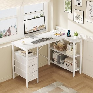 FONTOI 47 Inch L-Shape Computer Desk Game Desk with 3 Drawers USB Interface, Workstation Working Table with Open Shelf, White, 31.5"* 47.2"*29.7"