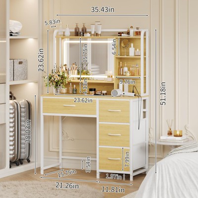 FONTOI 58.5"W Makeup Vanity Desk with Mirror Adjustable Length and Ample Storage for Bedroom Dressing Room, Black/White, 58.5"*15.8"*52.3"