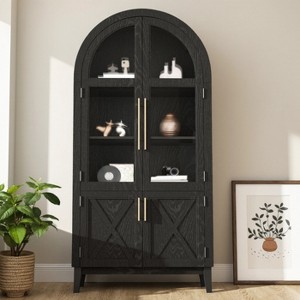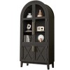 FONTOI 74" Tall Arched Display Cabinet with Glass Door, 5-Tier Arched Cabinet with Storage Door for Living Room Dining Room, 74.3"*36"*17.5"