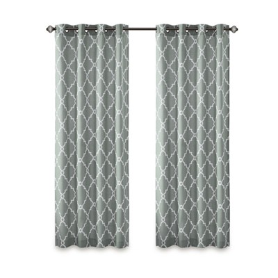 Product Name: FONTOI Curtain Panels, Fretwork Print Grommet Top Window Curtain Panel for Living Room, Bedroom, Grey&White, 84"*50"*0.13"
