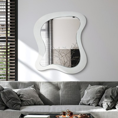 FONTOI Full Length Floor Mirror with Wooden Frame Irregular Wavy Design Modern Standing or Wall Mounted Accent for Bedroom, White, 63"*24"*3.34"