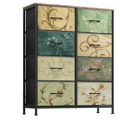 FONTOI Nightstands with Large Capacity Storage, Vintage Patterned Drawers, Space-Saving Design for Bedroom Clothing, Multi, 39.37"*11.81"*20.87"