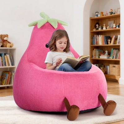 FONTOI Sofas 24-Inch Eggplant-Shaped Bean Bag Chair with Detachable Cover, Comfortable, Anti-Slip Bottom, Ideal for Kids, Red, 23.62"*24.41"*21.65"