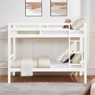 FONTOI Twin over Twin Bed with Ladder, Bed with Guardrail for Kids, Teens, No Box Spring Needed, White, 78.4"*61.8"*43.5"