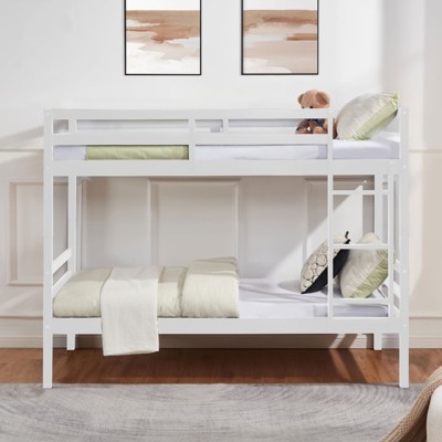FONTOI Twin over Twin Bed with Thick Posts, Bed with Guardrail and Ladder for Kids, Teens, No Box Spring Needed, Black, 79.4"*61.8"*43.5"