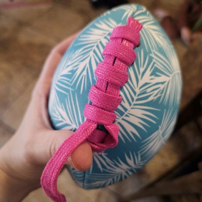Make sure you read the description thoroughly! I was expecting 4 footballs to arrive and only one did, which makes sense looking back but. Also it’s luck of the draw what color you get. I was planning to put in my son’s Easter basket but we received pink so I’ll give to my daughter instead. The “laces” are literal shoe laces.