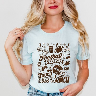 Product Name: Football Vibes Touchdown Collage - Womens Garment Dyed Tee