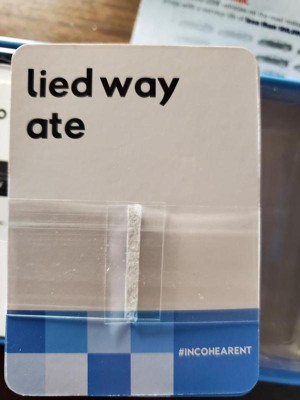 [This review was collected as part of a promotion.] We got to try out this new game called INCOHEARENT , it is a really fun game to play. This is an adult game too. Easy to read how to play, you say the word on the front of the card and within the word you can hear the hidden words, Really fun game to play. We laughed so much playing this our stomachs were hurting from the laughter. If you haven't 't played this game you need too.