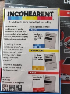 [This review was collected as part of a promotion.] We have the Incohearant exp pack and it is a great game! We play it at the lake and have so much fun with it! The whole campground joins in and it is a great time!