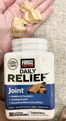 [This review was collected as part of a promotion.] I started taking the Force Factor Daily Relief Joint Soft Chews when I realized my knees were sounding like bubble wrap every time I stood up. I’m not quite ready to feel ancient, so I figured it was worth trying something that didn’t involve taking a big pill. The soft chews are genuinely tasty (mixed berry again—no complaints!) and super easy to work into my routine. After a couple of weeks, I noticed less stiffness, especially first thing in the morning or after sitting for a while. I’m not running marathons, but walking the dog and keeping up with daily life feels smoother—and less creaky. Big bonus: no weird side effects, and it doesn’t upset my stomach like other joint supplements I’ve tried. If you’re looking for something that supports joint comfort without the fuss, these chews are low-key awesome.
