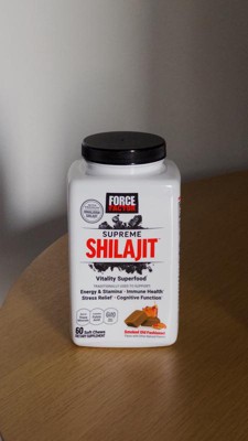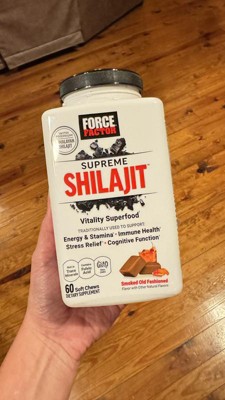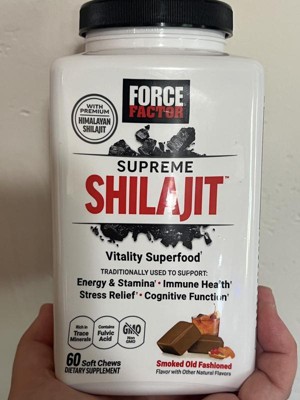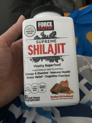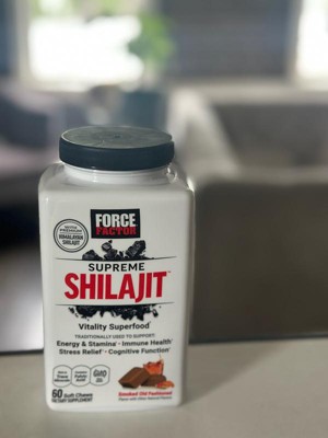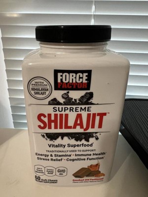 With Premium Himalayan Shilajit Vitality Superfood Rich in Trace Mineral Contains Fulvic Acid Non GMO Flavor with Other Natural Flavors Dietary Supplement No Artificial Sweeteners No Artificial Dyes No Gelatin Third-Party Tested Vegetarian Traditionally Used to Support: Energy & Stamina Immune Health Stress Relief Cognitive Function Revitalize Your Vitality Shilajit is an ancient adaptogen used for centuries for its vitality-boosting benefits. Supreme Shilajit™ harnesses the power of this legendary superfood in a way that's convenient, effective, and great tasting. Every delicious soft chew is packed with naturally smokey Himalayan shilajit extract, rich in trace minerals known to promote everything from energy and mental clarity to immune health and stress relief. Force Factor® is an award-winning global health company committed to bringing you powerful, safe, and effective formulas backed by innovative scientific research. We know that great nutrition changes lives. Whether you want to improve your mind, body or performance, we have the formula to help you do it. Let Force Factor help Unleash Your Potential®.
