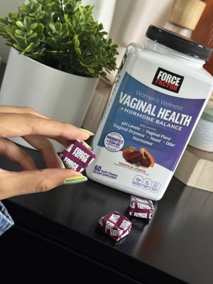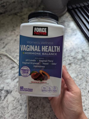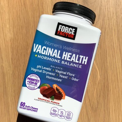 Clinically Studied Probiotics + KSM-66® Ashwagandha Flavor With Other Natural Flavors Dietary Supplement No Artificial Sweeteners No Artifical Dyes Third-Party Tested Non GMO Vegetarian Gluten Free Made W/O Dairy Made W/O Soy No Gelatin Balance: pH Levels Vaginal flora Vaginal dryness Yeast Odor Hormones Force Factor® is an award-winning global health company committed to bringing you powerful, safe, and effective formulas backed by innovative scientific research. We know that great nutrition changes lives. Whether you want to improve your mind, body or performance, we have the formula to help you do it. Let Force Factor help Unleash Your Potential®. Feel More Confident & Comfortable Maintaining a healthy hormone balance is essential for optimal vaginal health. Force Factor® Women's Wellness Vaginal Health + Hormone Balance is a holistic formula that provides daily vaginal support for common concerns, with noticeable results starting in as little as 28 days.^ With three strains and 5 billion CFUs* of clinically studied probiotics, plus KSM-66® Ashwagandha, every dose supports pH balance, vaginal flora, and hormone health. Adding two soft chews to your daily wellness ritual makes it easier to find the balance your body needs. *At time of manufacture ^Ashwagandha extract has been shown to improve vaginal dryness and sexual function in as little as 28 days in a randomized, double-blind, placebo-controlled pilot study (Dongre et al ., 2015).