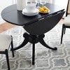 Introducing the Forest Drop Leaf Dining Table in sleek black wood, a blend of elegance and practicality designed to enhance any living space. This table adapts seamlessly to your lifestyle with its versatile drop leaf feature, offering flexibility for intimate gatherings or larger occasions. Crafted from wood, its refined design adds a touch of sophistication to any dining area, making it the perfect centerpiece for your home. The deep black finish complements a range of styles, from modern to classic. Elevate your dining experience and create moments of connection around this beautifully crafted table. Discover the ease of transformation and the space-saving benefits it brings to your home.