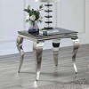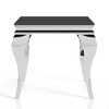 This end table is a stylish way to liven up any room. A sleek, modern design makes the piece a focal point of your living area. The contemporary design features a beveled tempered glass top sitting atop stunning cabriole style legs in stainless steel. The alluring design of this end table makes it an excellent choice for bringing glam style to your space with a dash of drama.