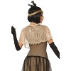 Add some more glitz and glamour to your flapper costume with this 20's Sequin Shawl in beige. This capelet shawl features a sheer beige fabric with gold sequins and beads to add some fun razzle dazzle to any look!