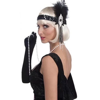 Forum Novelties Black Sequin Adult Costume Flapper Headband With Peacock Feather