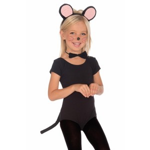 Dress up as a sneaky little mouse this year with this adorable costume kit. This kit includes a black headband with attached mouse ears, a tail, and a black bow tie for a classy mouse look. Complete the costume with black clothing and you're ready to join the rest of your animal friends.