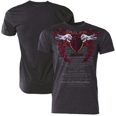 The Forza Sports "Soar" T-Shirt provides a soft, comfortable fit and displays unique graphics! The front of the shirt displays "Forza" with the monogram surrounded with wings and highly detailed graphics and colors. The left sleeve shows a Forza badge that reads, "Forza Est. 2008 MMA." Crew neck t-shirt design for maximum mobility. Vintage feel, cotton blend relaxed fit t-shirt. Tagless label on the top interior for ultimate comfort.