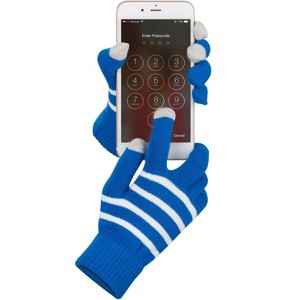 Fosmon Touchscreen Gloves, Winter Knit Gloves with Touch screen Fingers for Men & Women, Superb Accuracy on 3 Conductive Fingertips - Blue/White