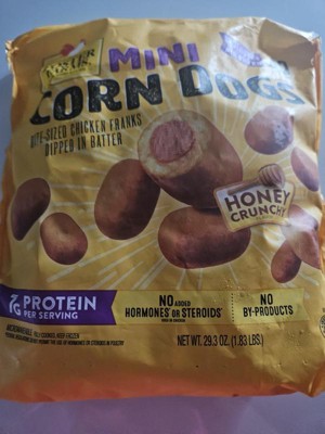 [This review was collected as part of a promotion.] These little mini corn dogs are a great snack for kids of all ages. My kids love them. We have growing boys who always have friends or cousins over and you just pop them in the oven for 15 minutes and they are done, serve with your favorite sauce. I love the hint of sweet honey flavor in the batter. Will definitely be buying these in the future.