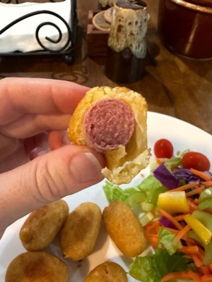 [This review was collected as part of a promotion.] These mini corn dogs are sooo delicious! I put them in the air fryer on 360 degrees for 8 minutes and they were cooked through and very crunchy and delicious! The honey flavored breading was also very good.the 40 count is very much worth the price and is definitely a great quick fas!t snack/meal.