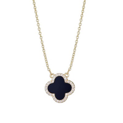 SmallRig Four Leaf Clover Necklace for Women, 18K Gold Plated Lucky Jewelry Gift Black
