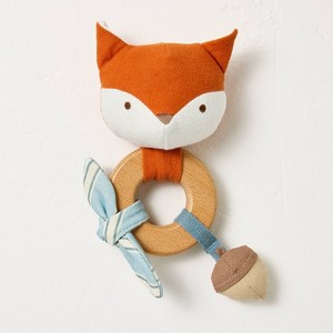 Your baby will enjoy hours of entertainment with this Handheld Interactive Toy from Hearth & Hand™ with Magnolia. This handheld toy features a wooden ring for easy clasping and boasts a cute animal face crafted from 100% recycled polyester. The wooden ring comes with fabric charm attachments that helps in sensory and fine motor skill development. Suitable for babies up to 12 months, it's a great toy to learn about shapes and colors.