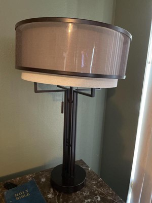 Franklin Iron Works Andes Modern Industrial Table Lamp 27 1/2" Tall Oil Rubbed Bronze Metal Stacked Double Fabric Drum Shade for Bedroom Living Room