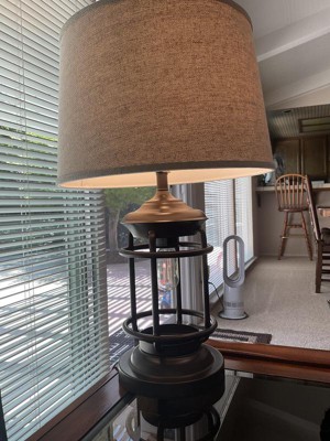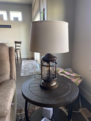 Franklin Iron Works Andreas Industrial Table Lamp 26" High Brown Metal with Nightlight LED and USB Charging Port Oatmeal Shade for Living Room Desk