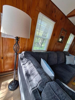 Beautiful lamp, adds just enough lighting to our dim living room that’s easy on the eyes but bright enough I don’t need to use a flashlight. I wish the lamp shade was a tad lighter or more translucent, but an easy fix with different bulbs.