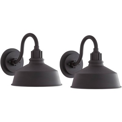 Franklin Iron Works Arnett Rustic Industrial Farmhouse Outdoor Barn Light Fixtures Set of 2 Black Dusk to Dawn Gooseneck 10 1/2" for Exterior Deck