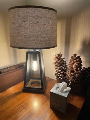 Franklin Iron Works Barris Industrial Table Lamp 26 3/4" High Metal Mesh with Nightlight LED USB Charging Port Burlap Shade for Living Room House Desk