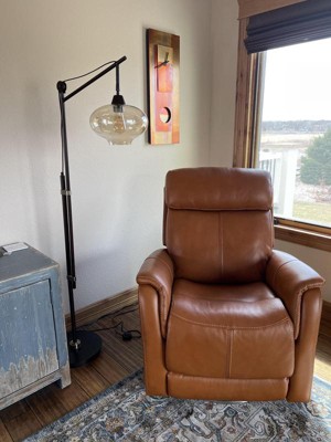 Franklin Iron Works Calyx Industrial Downbridge Floor Lamp 66" Tall Bronze Dimmable LED Cognac Tinted Glass for Living Room Reading Bedroom House Home