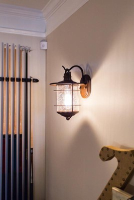 I fell in love with the look of this light and the matching post light. We've had them a year. Also for note we're in Wisconsin, for weather/exposure condition reference; we installed 2 on either side of the garage and one on the covered front porch. Pros: -Very bright even with low watt bulbs bc of the glass. -They're beautiful and make quite the statement. Cons: -Not sealed, at all! It's full of spiderwebs and dead bugs, water gets in. -It's already rusting and the metal is sustaining damage. There's steaks of rust running down the clear glass. -When switching out a bulb last week, part of the socket broke off one lamp, rendering it useless. The bulb was the appropriate size, the others came out just fine. It just snapped off and we didn't even realize it had happened until trying to put the new bulb in.