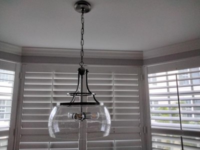 We couldn’t be happier with our purchase of this light! It’s truly beautiful and we get so many compliments. The seeded glass adds a great touch. I highly recommend it!