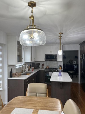 These lights are so gorgeous! We hung them as pendent lights over our kitchen island and they are so elegant and beautiful. We were worried about the size in maybe being too big, but once up, they are beautiful! We did switch the light bulbs provided our for regular soft light bulbs instead of the antique bulbs.