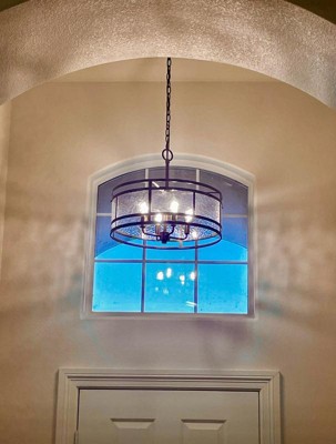 Perfect fixture for my octagon shaped room. Glass panels add texture and character. Chandelier accents bronze entry doors. Ships fast and packed well. No cracks or scratches on the unit. Easy to install.