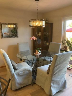 So beautiful. I bought the open box, it came perfectly and I am so happy with the dining room! Lamps Plus has fantastic service, selection, packaging, and shipping.