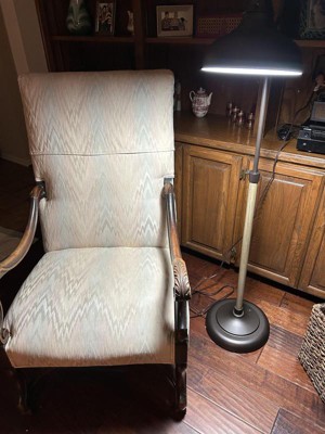 I love my new lamp. It is similar to the lights I have over my island. The lamp is perfect as the light is reflected at a better angle for reading and also for doing my needlework. The lamp is well made and has a heavy base that won't tip over. It was packaged great. No scratches or bent pieces. Easily put together.