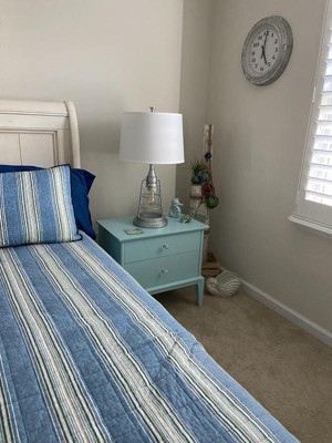 Absolutely LOVE this lamp. Goes perfectly in my beach cottage. Very well made, will definitely hold up to kids and their rough play!!