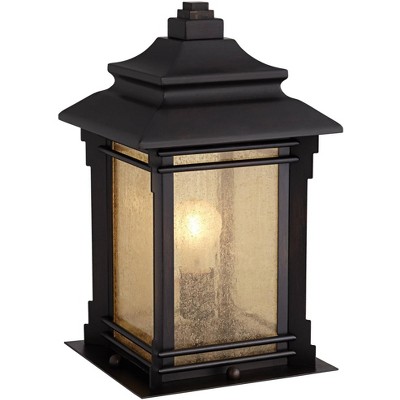 Bring the charm of a country garden to your yard or driveway with this outdoor pier mount light from Franklin Iron Works. This lantern-style fixture comes in a bronze finish frame with seeded glass panels for a lovely old-fashioned look. A scrolling leaf-and-vine pattern runs across the sides for a beautiful decorative accent.