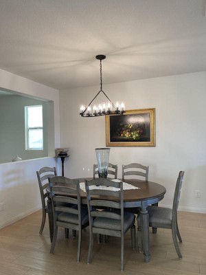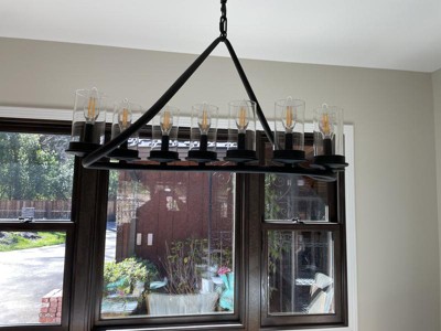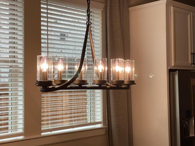 Bought this chandelier for our dining area. Beautiful except for the color. It said bronze in the box but it's more of black color. I still love it.