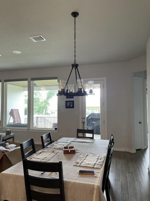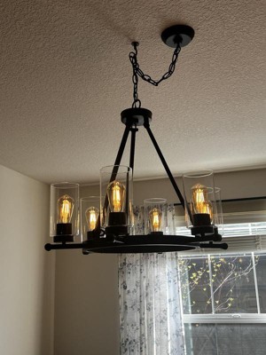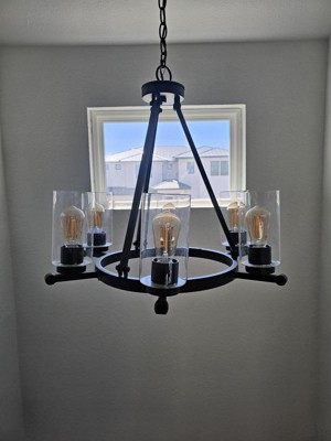 Great chandelier. We just bought a new home and didn't like the light fixtures. This is the modern farmhouse design we wanted. Pro tip wear gloves to install the glass to prevent fingerprints.