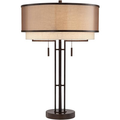 This is a sturdy classic lamp. It is perfect for recharging your phone and I love that you can have 1 bulb on or 2. Large enough for living room and serene enough for bedside.
