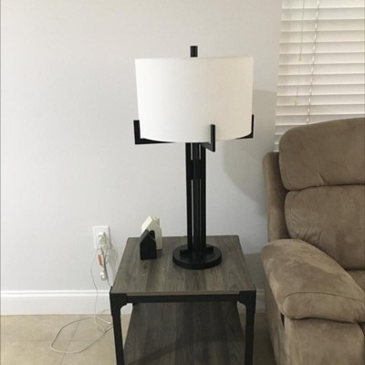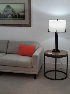 Franklin Iron Works Idira Modern Industrial Table Lamp 31 1/2" Tall Black Metal White Drum Shade for Bedroom Living Room Bedside Nightstand Office