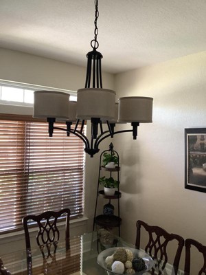 Franklin Iron Works La Pointe Oil Rubbed Bronze Pendant Chandelier 26" Wide Rustic Oatmeal Linen Shade 5-Light Fixture for Dining Room Kitchen Island