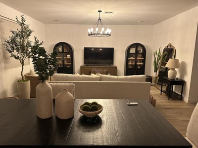 We love our new chandelier ! The quality is amazing and we are so happy with this purchase! It really pulled our dining room together !