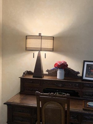 We were looking for a couple of table lamps for our living room and found three different ones by Franklin Iron Works. I couldn't decide which one to choose so I ordered all three. They all are beautiful and so well constructed. I love the gorgeous shade and the pull chain concept most of all. The lamp was delivered on Sunday! Lightning fast shipping! The lamp was packaged very thoroughly. Very pleased with the quality and the look of the lamp. Sadly had to return this beauty because my husband decided he liked another one better. It was a tough decision to make for both of us. Absolutely gorgeous lamp!
